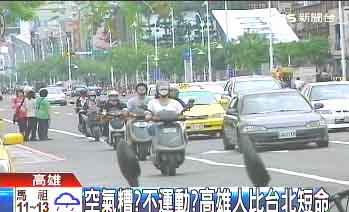 高雄市民騎著摩托車不得不戴上口罩,高雄市民似乎很習(xí)慣,但這樣的空氣質(zhì)量可能已經(jīng)影響到壽命長短。空氣不好是公認(rèn)的高雄人短命的主因。根據(jù)去年臺(tái)當(dāng)局“內(nèi)政部”公布的生命表,臺(tái)北人平均可以活到81.87歲,其它五縣市平均也有78.92歲。不過住在高雄市的人,平均只能活到78.21歲,整整少了臺(tái)北人3歲。