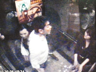 已婚男子陳嘉麟夜半約出昵稱“兔兔”(右)的女網友唱歌,卻嫌女方“丑還一直拿麥克風”,朝她咒罵并強盜物品;電梯內的同行女客(左)嚇得不知所措。圖片來源:聯合報