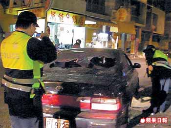 臺南一名女子的轎車,昨晚被飚車族莫名痛砸。 來源:臺灣《蘋果日報》