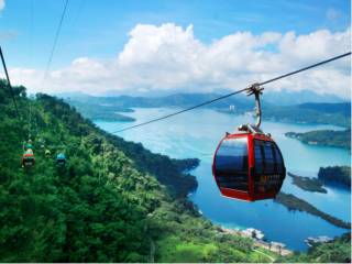 歷經18個月施工,日月潭空中纜車完工通車,全長1877米,起點在伊達邵青年活動中心,終點在九族文化村觀山樓,與九族纜車連成一氣。