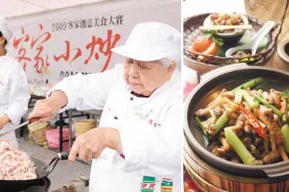 這項由“客委會”主辦的廚藝比賽,今年第一屆特別強調傳統“客家小炒”的料理,昨天分國際、家庭、學生、社會四組展開決賽。這位被評審形容“腰桿很直”、“動作利落”的客家阿嬤,從小炒到大的“客家小炒”難不倒她,阿嬤還擅長創意料理,做出連評審也驚嘆、融入了紅曲、桔醬與原味的小炒創意版“開胃三品味”,評審認為,從排盤到配色,完全有職業水平。