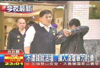 臺北縣警方破獲一個暴力討債集團,恐嚇被害人不還錢就活埋。(圖片來源:臺灣TVBS電視臺)