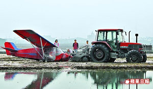 中國(guó)臺(tái)灣網(wǎng)2月1日消息 據(jù)臺(tái)灣《蘋(píng)果日?qǐng)?bào)》報(bào)道,南投縣草屯鎮(zhèn)佑民醫(yī)院外科名醫(yī)黃永昌,昨早駕輕航機(jī)載兒子飛行時(shí),疑因機(jī)械故障和氣流不穩(wěn),迫降在臺(tái)中縣一處水田內(nèi),因田里正好放水耕種,黃的兒子輕傷,送醫(yī)包扎后已返家。臺(tái)灣“民航局”指出,除屏東大鵬灣、苗栗通霄外,其它空域均不得飛行輕航機(jī),已調(diào)查此案,若有違規(guī)將依《民航法》開(kāi)罰。