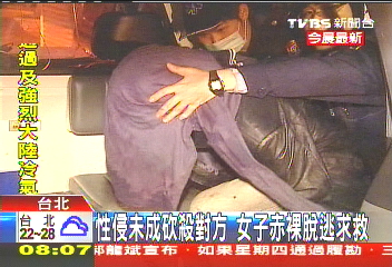 中新網3月3日電 據TVBS報道,臺北市萬華區,發生一起擄人意圖性侵案件!3日凌晨,一名男子當街將一名女子拖入民宅內,性侵未遂,甚至持刀砍殺,女子趁機逃出,頭部受傷、全身赤裸蹲坐在馬路旁邊,附近民眾看到趕緊報警處理。