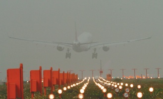 臺北桃園機(jī)場仍可起降飛機(jī),但馬祖機(jī)場因能見度過低,暫時關(guān)閉,圖片來源:臺灣《聯(lián)合報》