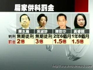 陳水扁并科罰金2億、吳淑珍3億,陳致中和黃睿靚都是1.5億,加起來共是8億新臺幣。圖片來源:臺灣“今日新聞網”