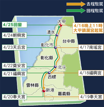 大甲媽祖繞境行程 來源:臺灣《蘋果日報》