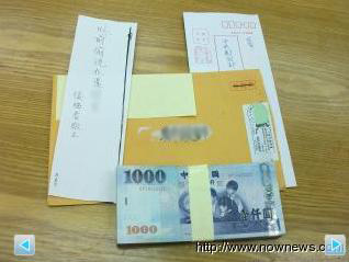 中國臺灣網4月28日消息 據臺灣“今日新聞網”報道,臺當局“財政部”日前收到一封裝有10萬現金(新臺幣 下同)的掛號信,寄件人匿名為“后悔者”,在里面的紙條上寫著“以前偷,現在還臺灣”。