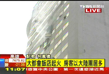 中國臺灣網5月6日消息 據臺灣TVBS電視臺報道,高雄市大都會飯店上午竄出火苗,高樓層不斷竄出濃煙,一度傳出10多名房客受困,還讓一個28人的大陸游客團飽受虛驚。