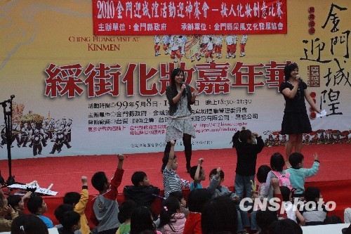 時至今天,迎城隍廟會已經演變為了長達一個月的金門國際文化藝術節,多了嘉年華的時代風尚。總兵署前廣場上,島上民眾帶著孩子前來參加妝人化妝比賽,孩子們古裝裝扮,滿臉描紅畫綠,出演自編自導的節目,引得圍觀者喝彩聲、歡笑聲不斷。而且,當晚,這些“妝人”還游行踩街。