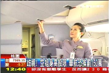 臺灣華航說,空服員要做的不只是服務,還得碰觸到安全設施,但反觀同樣也有找空姐的臺灣長榮跟臺灣復興,都沒對身高設限,臺北市勞工局說,就看華航能用什么舉證,來說服他們。(中國臺灣網 張辰劍)