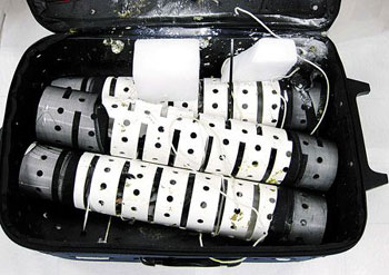 以手提行李走私活鳥,大多數都是裝在打洞的水管中。 圖片來源:臺灣《聯合報》