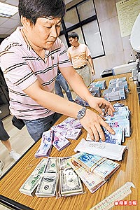 警方起出本票、賬冊(cè)、臺(tái)幣、美金、港幣合計(jì)約一千萬(wàn)元贓款。圖片來(lái)源:臺(tái)灣《蘋果日?qǐng)?bào)》