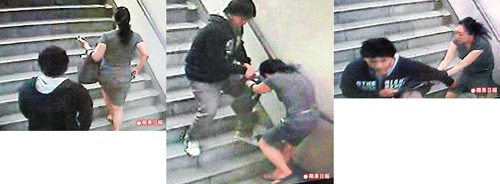 黃女向警方說(shuō):“歹徒一只手緊緊勒住我的脖子,我嚇?biāo)懒耍贿吅敖校贿厭暝!钡珦屜訆^力拉扯,名牌包還是被搶走,她只能在后追趕,大喊:“有人搶劫! ”袁姓排班出租車(chē)司機(jī)跟數(shù)名要搭車(chē)的民眾,聽(tīng)見(jiàn)地下道內(nèi)傳來(lái)求救聲,紛紛趕往出口處,只見(jiàn)搶嫌提著女用提包慌張跑出,眾人立刻喝令他不要?jiǎng)印?/P>