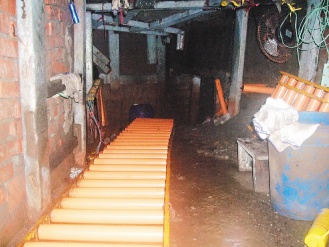 下水道內又黑又暗,官兵拿著手電筒爬進去,約20米后,進入較寬敞的空間,沿路都發現鋪有滾輪的軌道。“很黑很暗,而且很臟!”進入下水道的組員李忠益說,他走到下水道出口,發現是家福冷凍廠,請負責人打開倉庫,起出近五百箱走私香煙。