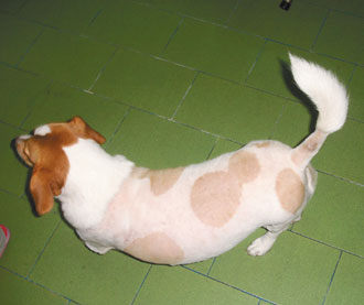 苗栗市永昌動物醫(yī)院獸醫(yī)師徐錦源說,“阿肥”應該是混種的米格魯犬,頸子有白色蝴蝶狀的鬃毛,軀體剃光的狗毛,有圓形的斑點,相當罕見。而狗尾部分,還特別留一段狗毛,造型特征確實讓人難忘。