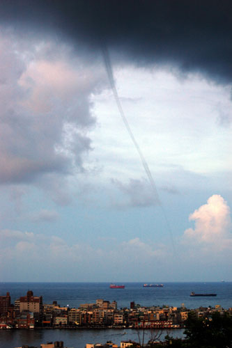臺灣高雄市壽山外海7日清晨出現(xiàn)疑似龍卷風景象。 圖片來源:“中央社”