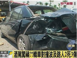 中國臺灣網7月8日消息 據臺灣今日新聞網報道,臺灣屏東縣潮州鎮發生死亡車禍!一輛銀色轎車今天凌晨零時多撞上一輛綠色轎車,因為對撞力道太強,轎車當場飛噴側移,波及到在路口的行人和雙載的機車騎士和乘客,行人當場死亡,機車騎士重傷送醫不治,被撞轎車上的孕婦母子均安,但疑似肇事的張姓女子酒測值高達1.07,事故原因是否為酒駕,還待警方再厘清。