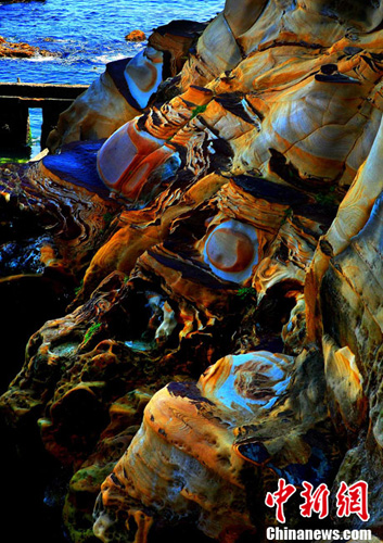 進入7月中下旬的臺灣野柳地質公園旅游區游人大增,觀光客游趣濃厚的野柳地質公園是一處突出海面的岬角,受海浪侵蝕、巖石風化等作用,形成蜂窩巖、菌狀巖、姜狀巖、臘燭臺等各種各樣的奇特景觀。中新社記者 宋吉河 攝