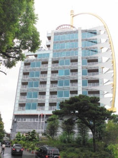 日月行館除了金箔船桅造型外,最大特色是,設在11樓的空中步道及觀景樓和12樓moon spa。游客站在突出于建筑物外的透明玻璃陽臺,可挑戰膽識及體驗270度超闊視覺,鳥瞰日月雙潭的美景。(中國臺灣網 王賽賽)