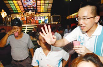 陳致中照常跑選舉行程,他向支持者強調(diào)在神明面前發(fā)過誓,絕對沒有召妓,否則自動退選。圖片來源:臺灣聯(lián)合報