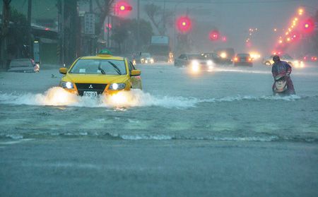 “凡亞比”臺風風強雨大,造成高雄市區(qū)積水嚴重,汪洋一片。 來源:臺灣《中國時報》