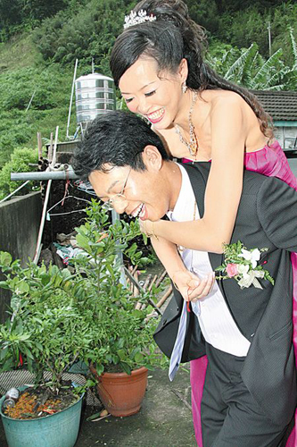 “凡亞比”臺風攪局,苗縣泰安鄉青年傅立仁的喜宴必須商借6處地點,他也要背著新娘到處敬酒,雖辛苦卻甜蜜在心頭。 來源:臺灣《中國時報》
