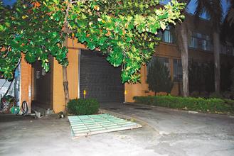 綠色鐵門被撞破倒在地上。(圖片來源:臺灣《聯合報》)
