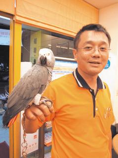 非洲灰鸚鵡小呱會學人說話,是店里活招牌 圖片來源:臺灣《聯合報》