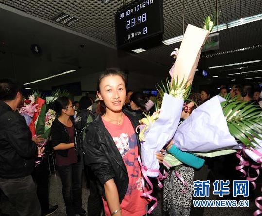 10月24日,部分在臺(tái)受困游客安全抵達(dá)昆明。當(dāng)日23時(shí)許,因遭遇臺(tái)風(fēng)“鲇魚”襲擊被困臺(tái)灣的31名云南籍游客和1名領(lǐng)隊(duì),以及100余名行程受阻的游客平安飛抵昆明。新華社記者楊宗友攝