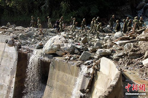 截至10月24日晚,臺灣蘇花公路失蹤人員搜索已過了“黃金72小時”,已判定失蹤的28人(其中包括20名大陸觀光客及領隊人員)依然杳無音訊。有關救援人員正在加緊重點區域的搜索。圖為當天下午蘇花公路114.5公里處塌方現場。