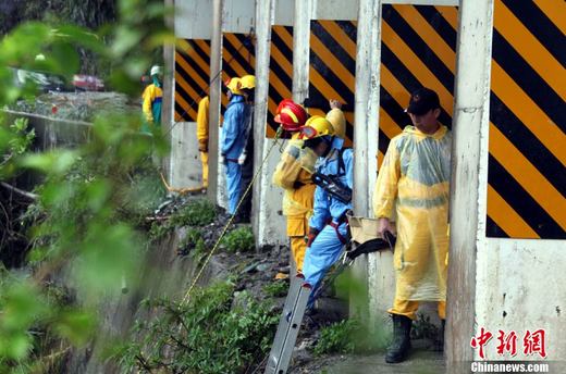 臺(tái)灣蘇花公路塌方事故已逾5天,事故發(fā)生的宜蘭縣一帶26日持續(xù)大雨。然而對(duì)失蹤者(包括18名大陸游客和2名大陸領(lǐng)隊(duì))的海陸空三路搜索仍在持續(xù)。現(xiàn)場(chǎng)搜索進(jìn)展艱難,其間并發(fā)生一名搜救隊(duì)員被砸傷的情況。中新社記者 王健 攝