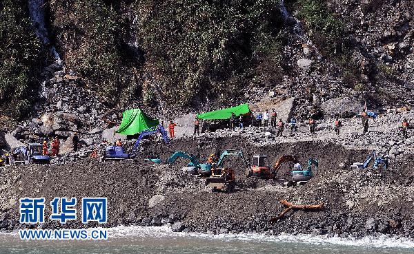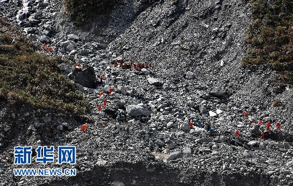 據徐松奕介紹,這個沖擊面所在位置的土石堆積高度達20米。陸上搜救部門31日派了120余名搜救人員在這里搜尋,并投入16部機械和三只搜救犬。