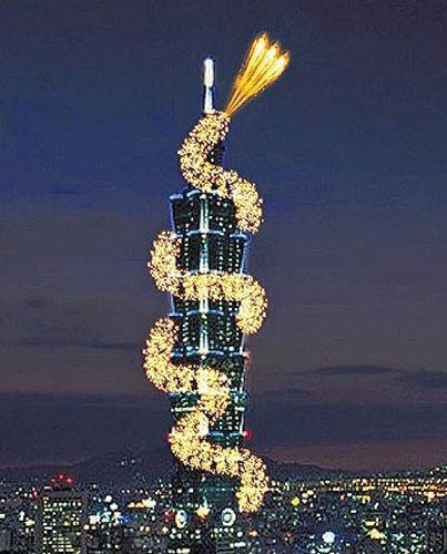 據(jù)臺灣《蘋果日報》報道,臺北101大樓跨年煙火秀將于三十一日登場,臺北101昨天(16日)首度公布煙火秀仿真圖案,其中一款“祥龍盤旋”營造出一尾金龍隨大樓建筑往上攀升、直到高五百零八米的塔尖處再噴出煙火的華麗壯觀感覺,呈現(xiàn)臺灣經(jīng)濟(jì)向上提升意向。煙火攝影達(dá)人建議,鄰近的新光三越A11頂樓空中花園、松仁路都是不錯的觀賞點。