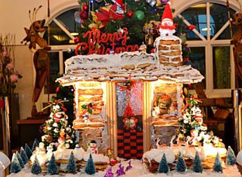 歡慶即將來(lái)臨的圣誕節(jié),礁溪溫泉飯店業(yè)者創(chuàng)意獨(dú)具,請(qǐng)主廚模擬西洋姜餅屋,以蔥油餅作為姜餅屋的材料,打造出一座色香味俱全的蔥油餅屋。而三星蔥是宜蘭著名的農(nóng)特產(chǎn)品,加入三星蔥花的蔥油餅香氣四溢,令許多民眾垂涎。