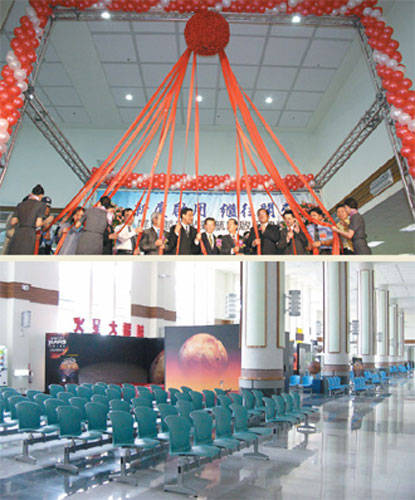 屏東機場2005年啟用剪彩時高官云集,如今淪為乏人問津的“蚊子機場”,2011年6月底前可能走入歷史。圖片來源:臺灣《聯合報》