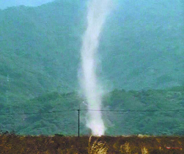 中國(guó)臺(tái)灣網(wǎng)3月3日消息 據(jù)臺(tái)灣媒體報(bào)道,出現(xiàn)在沙漠中的陸上龍卷風(fēng)竟然在臺(tái)灣屏東縣發(fā)生。日前,屏東一男子開車行經(jīng)一處農(nóng)地,他先看到塵土飛揚(yáng),后來驚見兩道半徑逾5米的龍卷風(fēng),并逐漸靠攏,30秒后結(jié)合在一起往南移動(dòng),約10多層樓高。約5分鐘后,龍卷風(fēng)離開,農(nóng)地才歸于平靜。