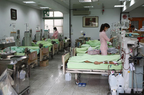 培德醫(yī)院13日開放媒體拍攝采訪,讓社會了解醫(yī)院的設(shè)備狀況。圖為醫(yī)護(hù)人員為受刑人在血液透析室洗腎。 圖片來源:“中央社”