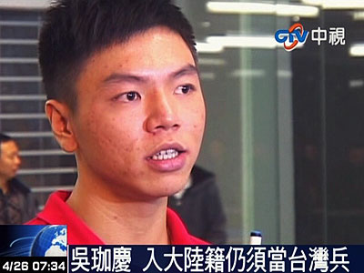 資料圖:吳珈慶雖入大陸籍,但依照臺灣方面的相關規定,他仍須回臺面對“兵役問題”。