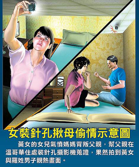 臺女子針孔相機拍母親偷情,幫助父親提告。圖片來源:臺灣媒體