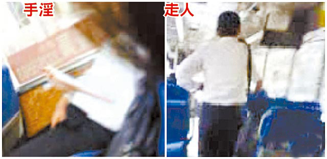 男子在公交車搓弄下體的過程(左圖)及下車時的身影(右圖),均被女學生拍下po網。圖片來源:臺灣媒體