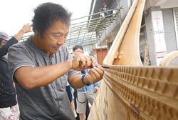 關(guān)野笑說,獨木舟以整根木頭挖鑿制成,為再現(xiàn)先人智能,制造獨木舟斧頭、鑿子也是利用鐵砂制成,甚至連船身白色涂漆也是以敲碎珊瑚礁,加上椰子油熬煮才能為船身防水。