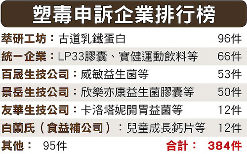 塑毒申訴企業排行榜。圖片來源:臺灣媒體