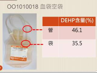 凌永健受訪時(shí)表示,臺(tái)灣絕大部分血袋都是PVC材質(zhì),其中含有極大比重的DEHP,受測(cè)品塑化劑含量高達(dá)血袋總重量的46.1%。由于捐血后可最多可保存達(dá)一年以上,冷凍血漿更可保存5年,而DEHP是脂溶性,血液中含有脂肪,“存放越久塑化劑溶入血液中越多”,病人在血液輸入身體的同時(shí),DEHP也同步進(jìn)入體內(nèi)。