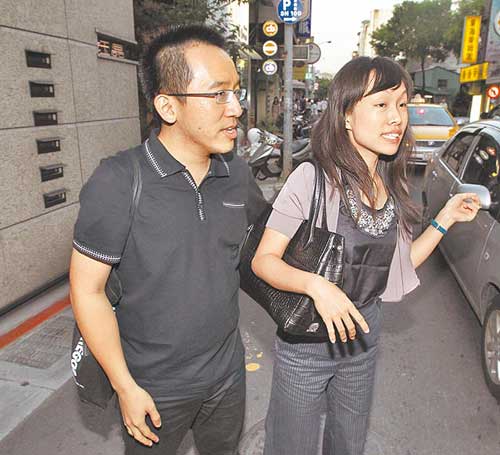 上周六傍晚6點許,記者直擊陳致中偕老婆黃睿靚一同現(xiàn)身臺北金華街上的“品悅糖”法式甜點店,他們選擇店內(nèi)角落并肩而坐,同桌另有1男1女友人,席間黃睿靚不停向?qū)γ娴挠讶苏f話,陳致中則斜眼看向老婆試圖插話卻未成功,不斷出現(xiàn)欲言又止的窘境,他們待沒多久,便趕著出席北社10周年餐會,和友人道別離去。