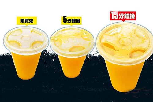 對于柳橙汁溶解杯蓋問題,果汁店業者表示,先前曾接獲顧客反映,購買的柳橙汁與檸檬汁會出現杯蓋溶解情形,曾向制造商反映但沒有解決,且杯子沒問題,更換其他杯蓋不合用,“只能請客人趕快喝掉!”
