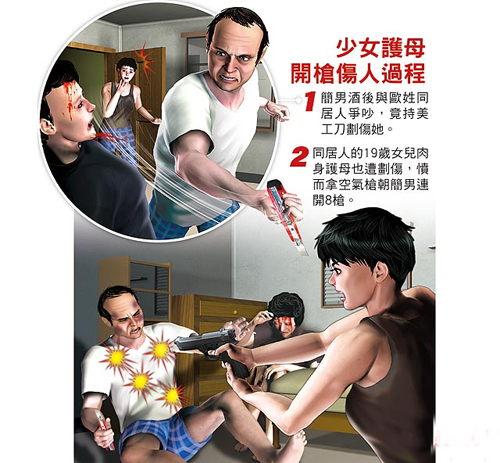 少女護母開槍傷人過程。圖片來源:臺灣媒體