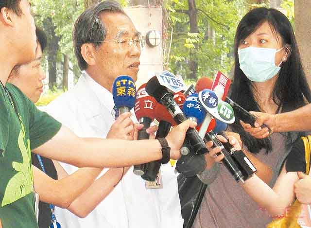 臺大醫院發生愛滋器官移植疏失,院長陳明豐(中)昨二度出面向社會道歉。圖片來自臺媒