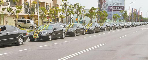 曾春風的送葬隊伍包括65輛高級奔馳轎車,場面盛大。(圖片來源:臺灣媒體)