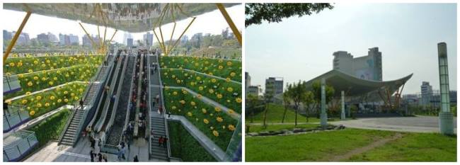 高雄地鐵中央公園站的設計理念則出自英國設計師理查·羅杰斯的巧思,其白色飛揚的雨庇搭配宛如向日葵田的綠化植栽,讓整個車站充滿活力,廣受好評,居全球最美地鐵站排行第4名。